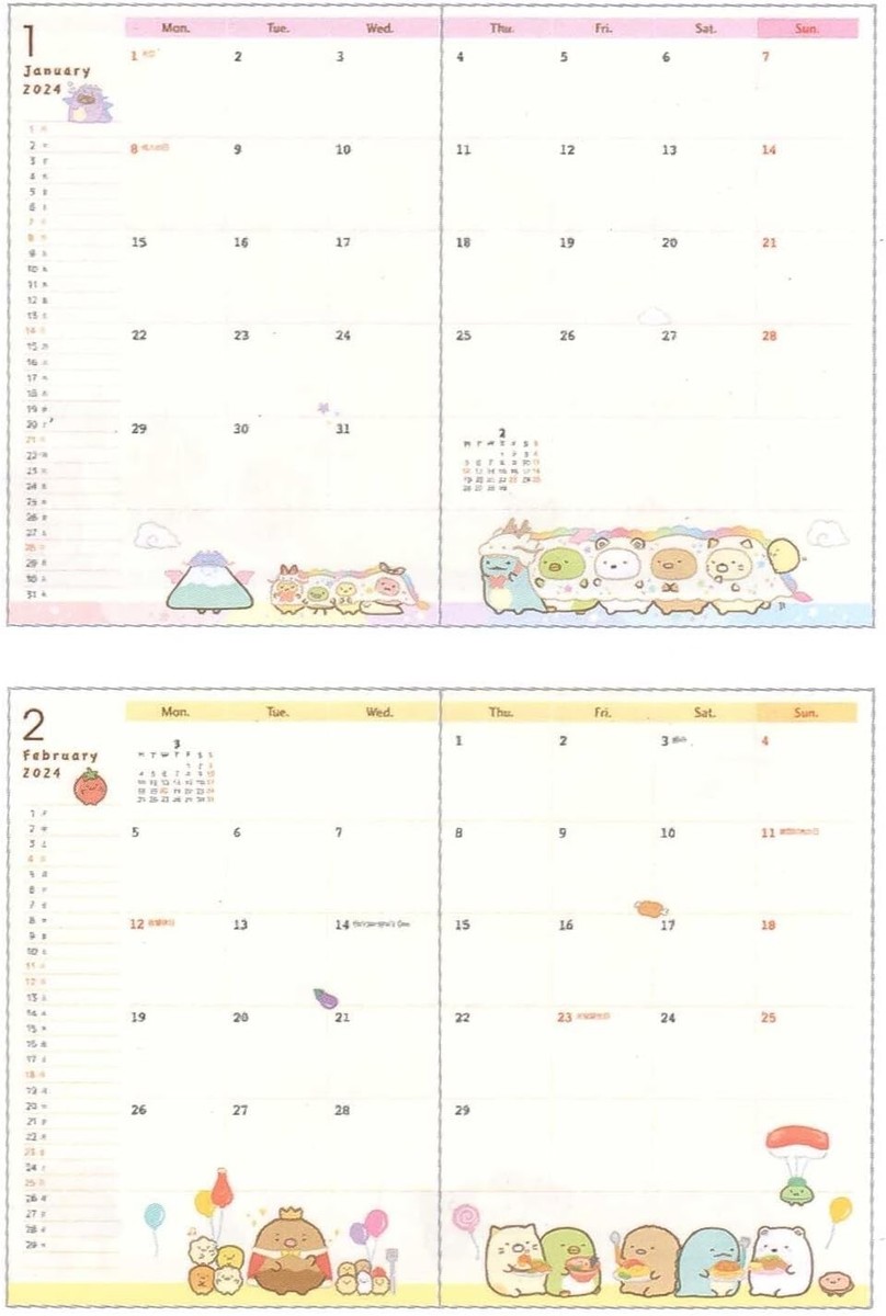 Sumikko Gurashi San X 2024 schedule planner Dragon B6 Weekly